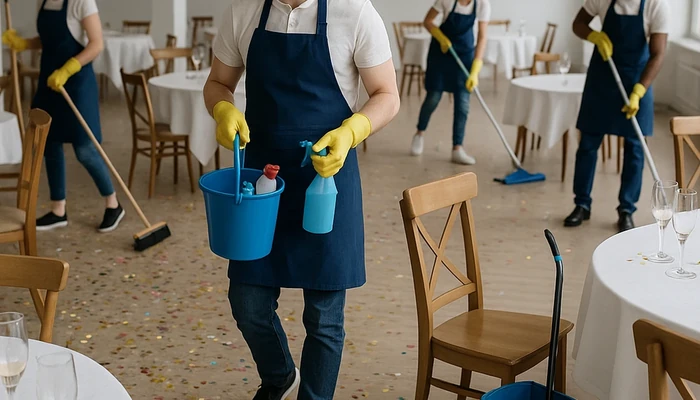 For an efficient event cleanup process, coordinated professional teams often deliver value beyond cost, especially for large or regulated venues.